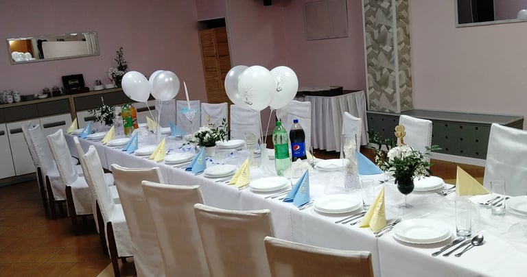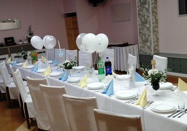 jedne z najbardziej Rodzinnych uroczystości. Jako, że głównymi bohaterami są Dzieci, tak jak ich Rodzice, my także pragniemy, by takie przyjęcie pozostawiło najpiękniejsze wspomnienia. Stajemy na wysokości zadania proponując Państwu najbardziej korzystną ofertę konsumpcyjną i organizacyjną. Dbamy o specjalny wystrój sali z dedykowanymi elementami dekoracji.